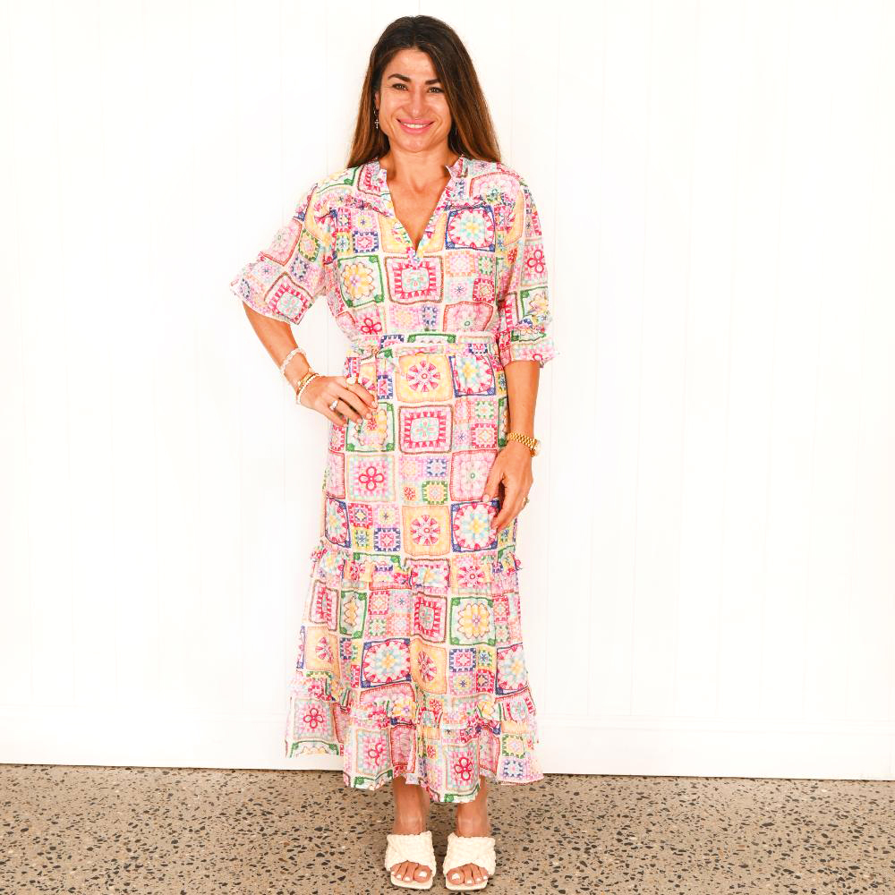 2420-M Crochet Dream "Fleur" Midi Dress - Medium