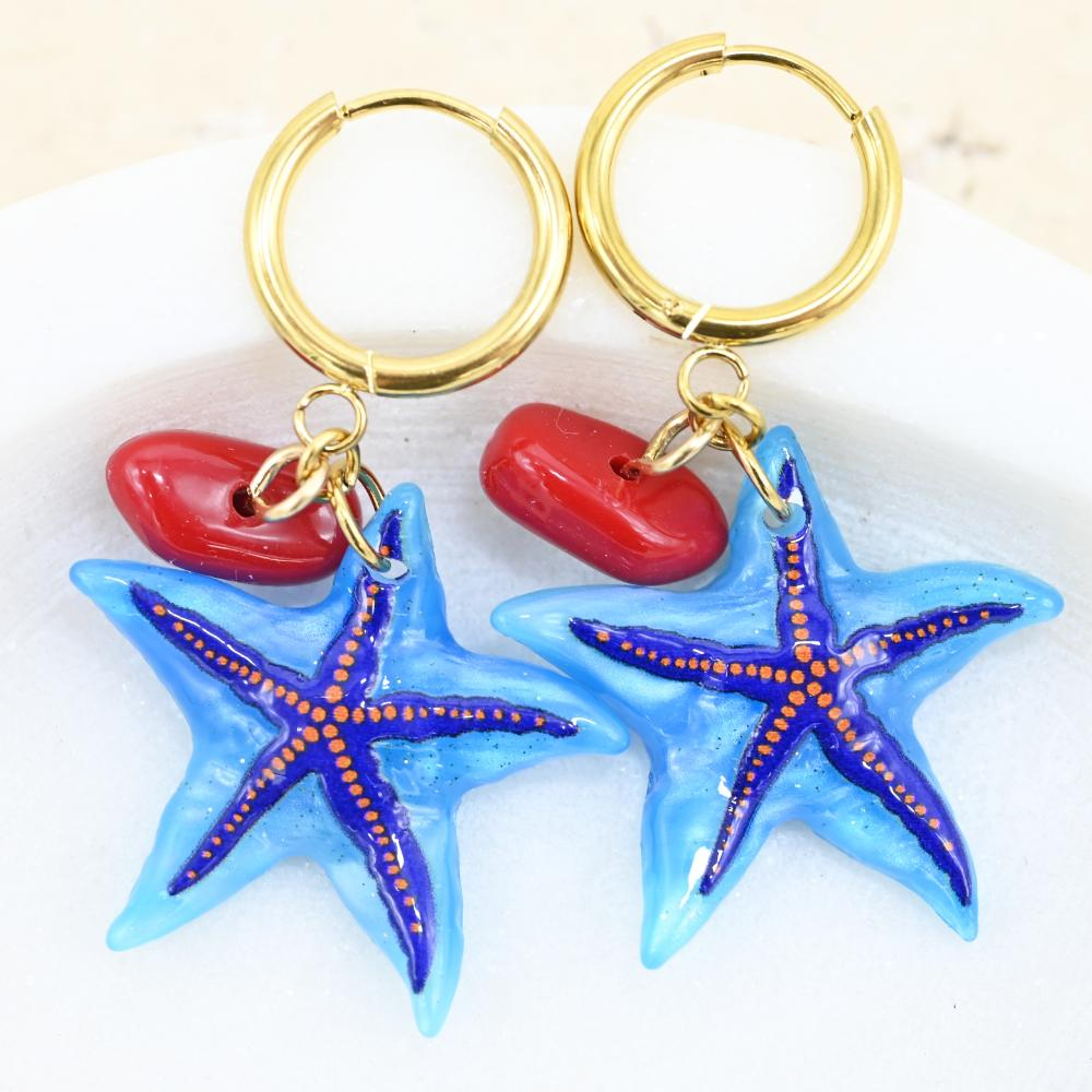 JKS-E Blue Starfish Earrings