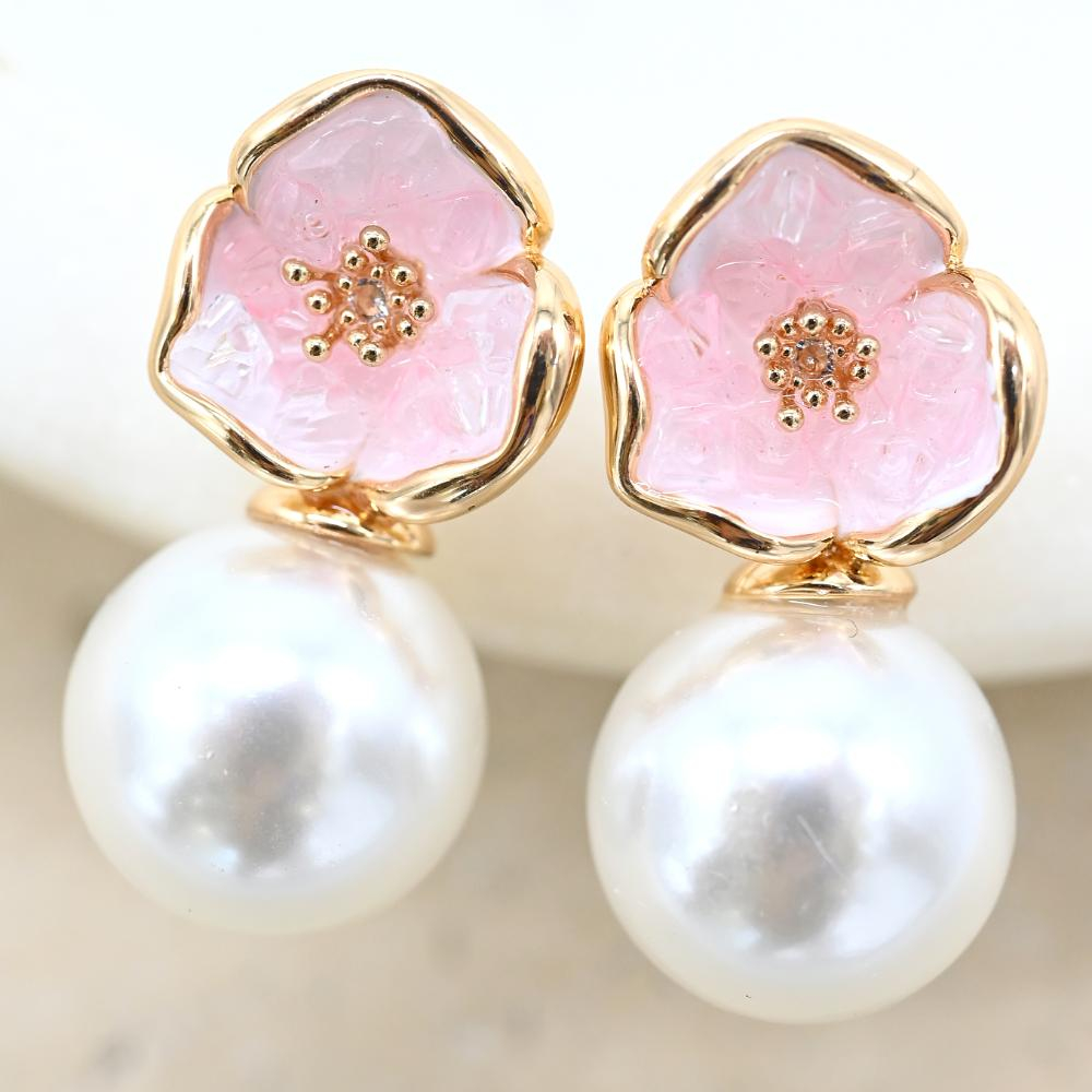 JMX-E-PK Pink Pearl Earrings